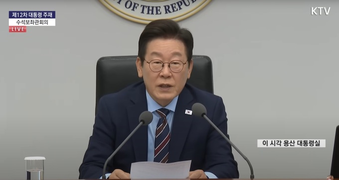 이재명 대통령이 추석 명절 연휴를 하루 앞둔 2일 오후 용산 대통령실에서 수석보좌관회의를 주재하고 있다. [사진=KTV] |