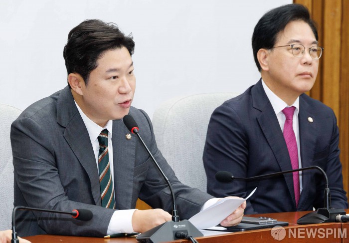 [서울=뉴스핌] 윤창빈 기자 = 진종오 국민의힘 의원이 1일 오전 서울 여의도 국회에서 열린 상임위원장 및 간사단 회의에서 녹취록과 관련해 발언하고 있다. 진 의원의 녹취록은 더불어민주당 소속 서울시의원이 내년 지방선거 서울시장 경선에서 김민석 총리를 지원하기 위해 종교 신도를 활용하려했다는 내용이다. 2025.10.01 pangbin@newspim.com |