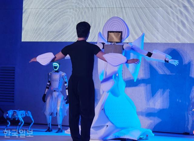 검은 옷을 입은 남성 안무가가 양팔을 들어 올리자 휴머노이드 로봇 '모모'가 마치 안무를 이어받듯 같은 동작을 했다. 모모는 고려대와 대구경북과학기술원(DGIST·디지스트)이 제작한 휴머노이드로, 멜라민폼 소재의 의상을 입고 기계적인 관절을 갖췄다. 유연하게 반응하며 안무가와 호흡을 맞추는 모습에, 딱딱한 기계가 아니라 인간과 소통하는 존재로 해석됐다.