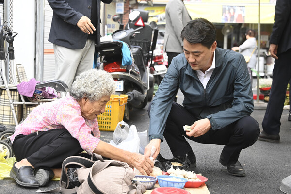 최재훈 달성군수가 추석 명절을 맞아 지난 1일 화원시장을 방문해 '전통시장 장보기 행사'를 실시하고 있다.사진=대구달성군(포인트경제) |