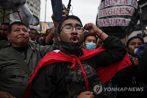 지난달 27일(현지시간) 정부 규탄 구호 외치는 페루 청년 |
