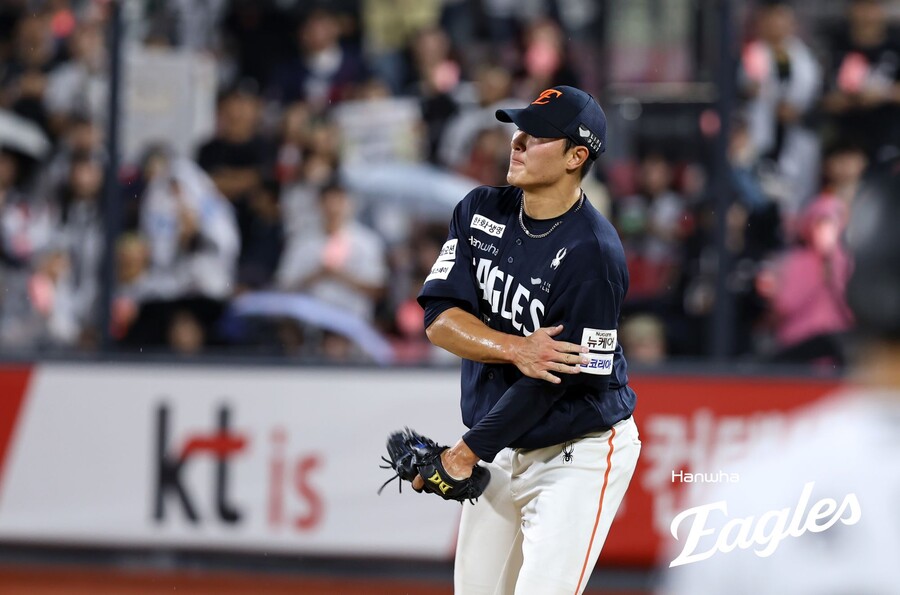 한화 이글스는 3일 수원 kt위즈파크에서 열린 '2025 신한 SOL뱅크 KBO리그' kt 위즈와 경기에서 6-6으로 비겼다. 1회에만 안타 7개를 뽑아내며 6점을 얻었는데, 결국 무승부가 되면서 83승 4무 57패 승률 0.593으로 정규시즌을 마무리했다. 5이닝 동안 110구를 던진 2022년 드래프트 1순위 출신 우완 박준영은 데뷔 첫 승을 놓쳤다.