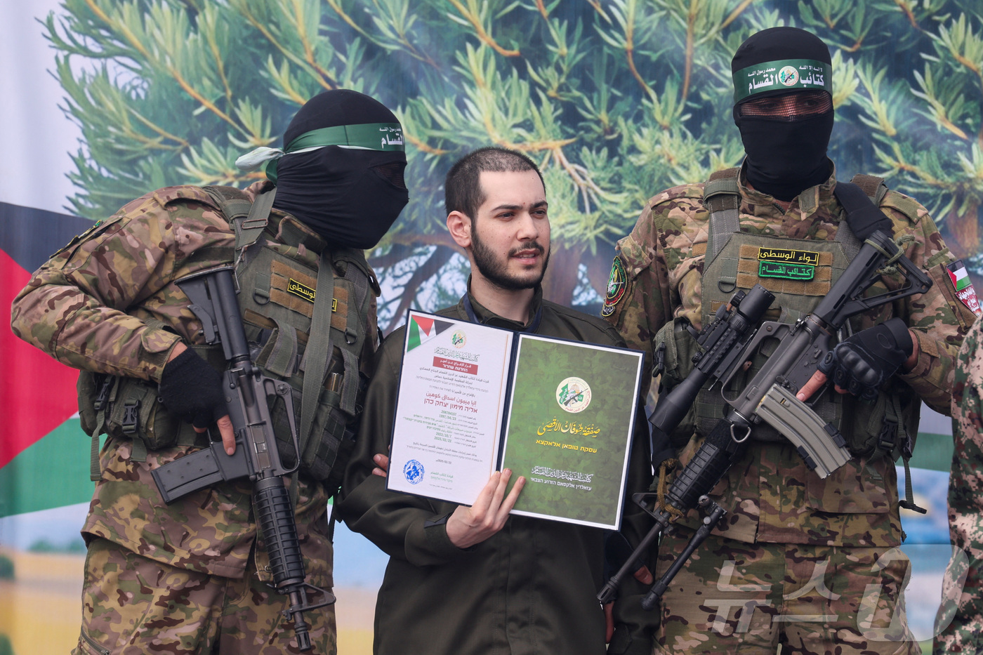 이스라엘과 지난 2월 인질 교환 당시 모습을 드러낸 팔레스타인 무장정파 하마스 조직원들. 2025.02.22. ⓒ 로이터=뉴스1 ⓒ News1 이지예 객원기자 |