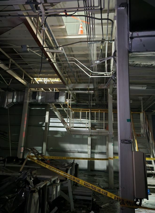 지난 3일 오후 9시28분 전북 완주군 봉동읍의 현대차 전주공장에서 2층 바닥 철거 작업을 하던 50대 노동자가 7m 아래로 추락해 숨졌다. 사진은 당시 A씨가 작업하던 공간./사진제공=전북도소방본부, 뉴시스 |