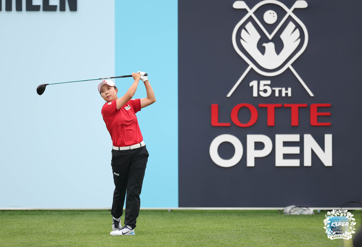 황유민이 2025 롯데 챔피언십에 출전해 티샷하고 있다. 사진=대홍기획 제공 |