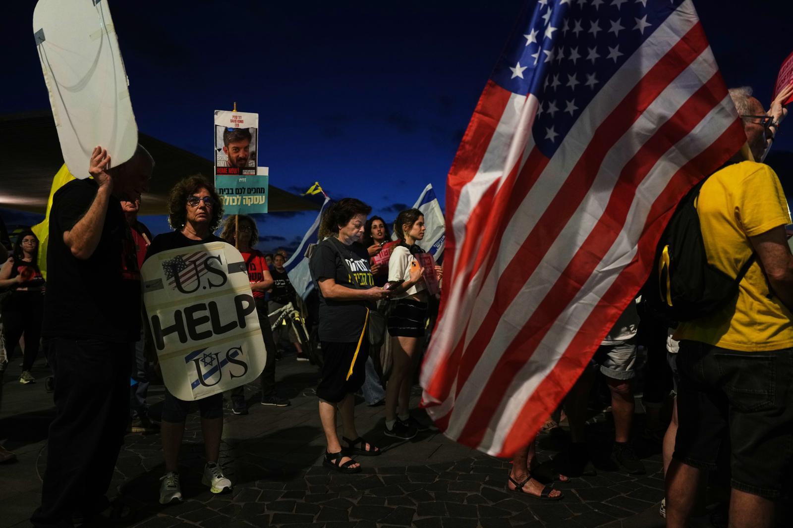지난달 29일(현지 시간) 이스라엘 텔아비브 주재 미국 대사관 분관 앞에서 하마스에 의해 가자지구에 억류된 인질들의 가족과 지지자들이 이들의 즉각적인 석방과 전쟁 종식을 촉구하고 있다. 도널드 트럼프 미국 대통령은 베냐민 네타냐후 총리와 백악관에서 회담 후 가자지구 전쟁 종식 계획에 네타냐후 총리가 동의했으며, 하마스 동의만 남았다고 밝혔다. 텔아비브=AP 뉴시스 |