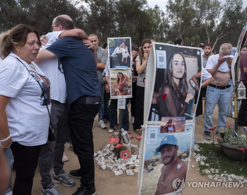하마스가 민간인 300여명을 살해한 음악축제 현장에 모인 가족과 추모객들. 연합뉴스 |