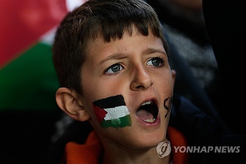 팔레스타인 지지 시위 참가한 튀르키예 소년 |