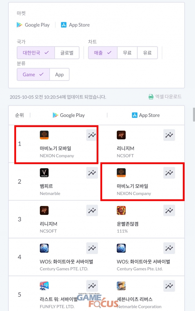 풍성한 추석 이벤트에 힘입어 마비노기 모바일은 5일 구글 플레이 매출 1위 애플 앱스토어 2위를 기록했으며 6일 기준으로는 구글 플레이 2위, 애플 앱스토어 3위를 기록하는 등 여전히 높은 순위를 유지 중이다.