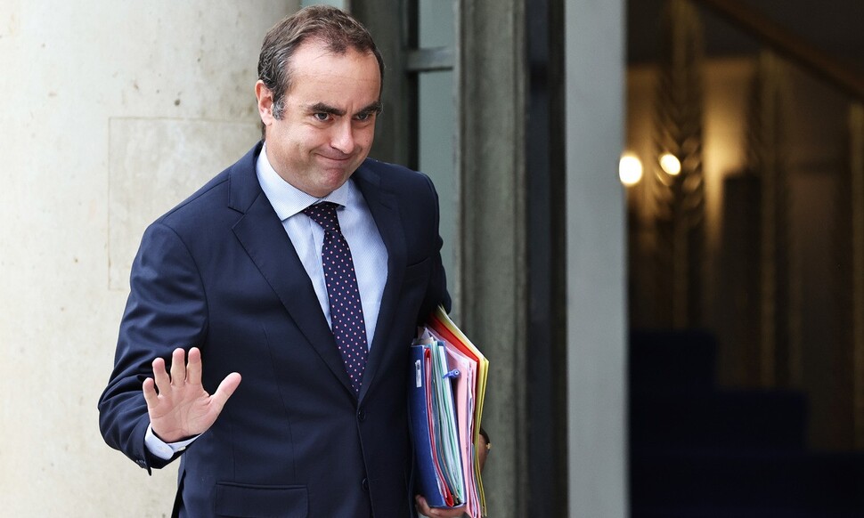 세바스티앙 르코르뉘 프랑스 총리가 지난달 4일(현지시각) 파리 엘리제 대통령궁에 도착해 취재진에게 인사를 하고 있다. 파리/신화통신 연합뉴스 |