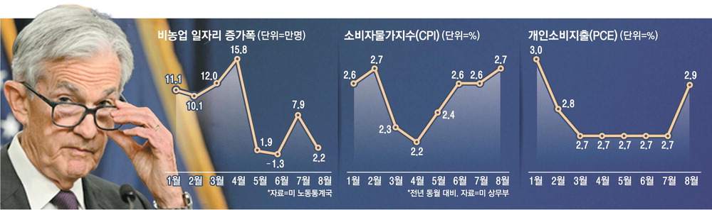 실제로 앞서 8월 비농업일자리는 2만2000개 늘어났고 시장 예상치의 3분의 1에 그치면서 충격을 안겼다. 작년 일자리 통계는 대폭 수정되며 91만1000개가 증발했다. 실업률 역시 4.3%로 오르며 4년 만에 최고치를 기록했다. 파트타임 근로자와 구직을 포기한 사람까지 포함하면 8.1%로 4년 만에 최고치에 달한다. 그만큼 고용 악화가 전방위로 확산돼 있다는 것으로 풀이된다.