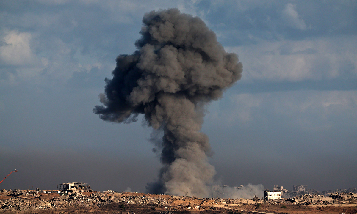 7일(현지시간) 가자지구에서 이스라엘의 폭격으로 연기가 피어오르고 있다. EPA연합뉴스 |