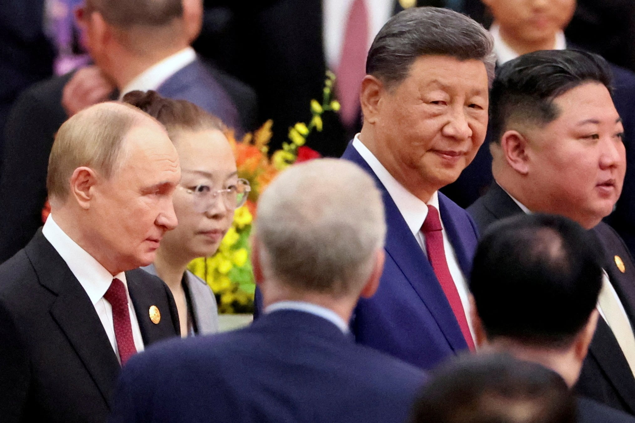 중국 국가주석 시진핑, 러시아 대통령 블라디미르 푸틴, 북한 지도자 김정은이 지난 9월 3일 중국 베이징 인민대회당에서 열린 2차 세계대전 종전 80주년 기념 리셉션에 참석하고 있다. /연합뉴스 |