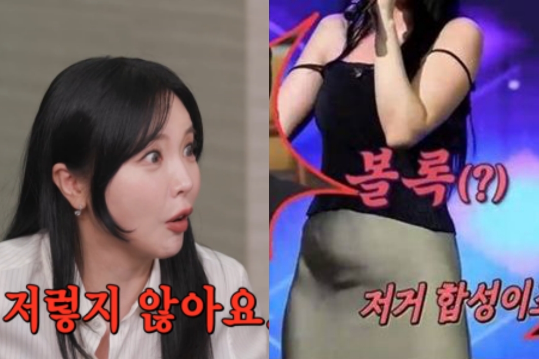 이날 공개된 영상에서 홍진영은 최근 SNS에서 화제가 된 직캠 영상에 대해 해명했다. MC 탁재훈이 "저거 합성이냐"고 물었다. 이에 홍진영은 "내 배 저렇지 않다. 댓글 보면 상처 받는다. '3개월이다, 6개월이다, 곧 낳는다'는 얘기도 있는데 만져봐라"며 억울해했다.