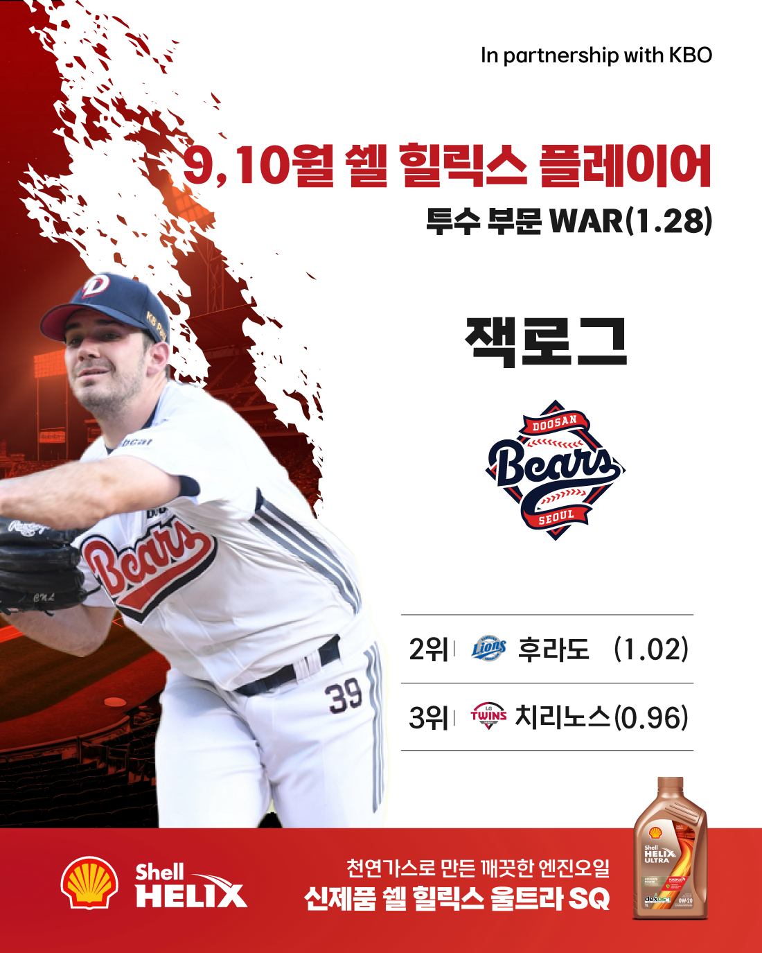 한국야구위원회(KBO)와 한국쉘석유주식회사가 함께 시상하는 ‘쉘힐릭스플레이어’의 ‘2025 신한 쏠뱅크 KBO리그 9-10월’ 수상자로 두산 투수 잭로그와 LG 내야수 오스틴이 선정되었다.