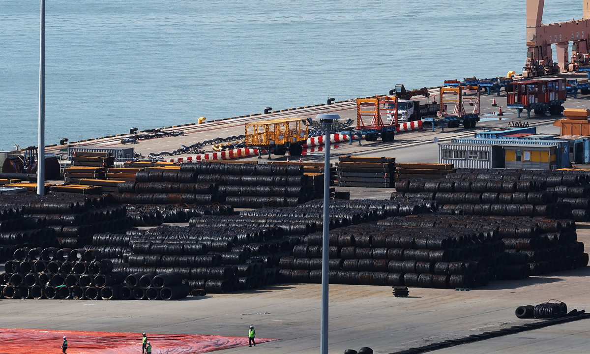 미국에 이어 유럽연합(EU)이 수입 철강 제품에 대한 무관세 쿼터(할당량)를 축소하고 품목 관세를 25%에서 50%로 높이기로 하는 등 무역장벽 높이기에 나서면서 한국의 철강 수출에도 작지 않은 타격이 우려된다. 사진은 8일 경기도 평택항에 철강 제품이 쌓여있는 모습. 연합뉴스 |
