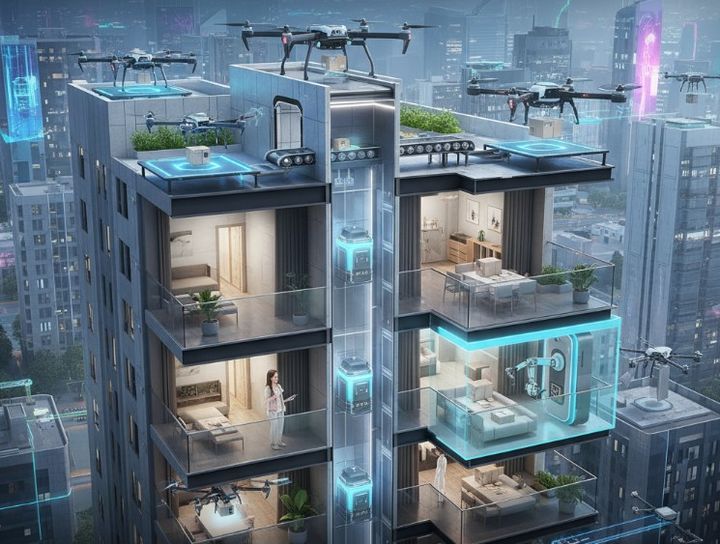 더 이상 현관이나 1층 무인 택배함으로는 미래 물류를 감당할 수 없게 되면서, 드론 정거장과 로봇 전용 통로를 갖춘 주택이 미래 주거의 표준으로 자리 잡을 전망이다.
