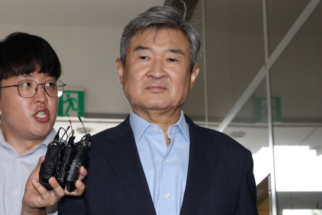 조태용 전 국가정보원장이 8월8일 오전 서울 서초구 이명현 특별검사팀 사무실로 출석하고 있다. 김혜윤 기자 unique@hani.co.kr |