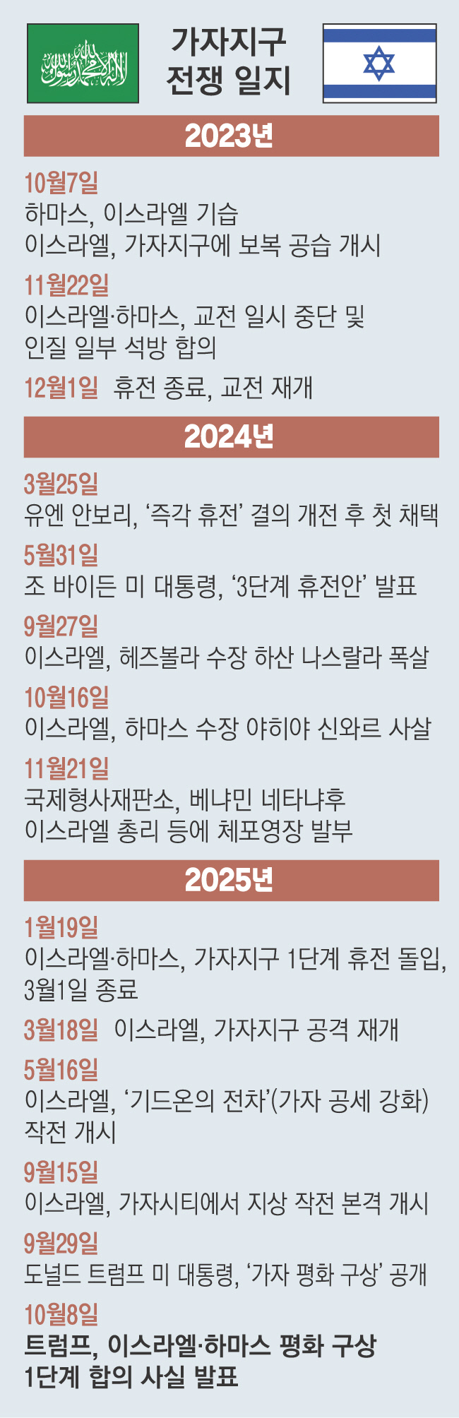 이스라엘과 팔레스타인 무장정파 하마스가 9일(현지시간) 가자지구 전쟁 종식을 위한 평화 구상 1단계에 합의하자 이스라엘의 인질 가족과 가자지구 주민들은 거리로 쏟아져 나와 환호했다.