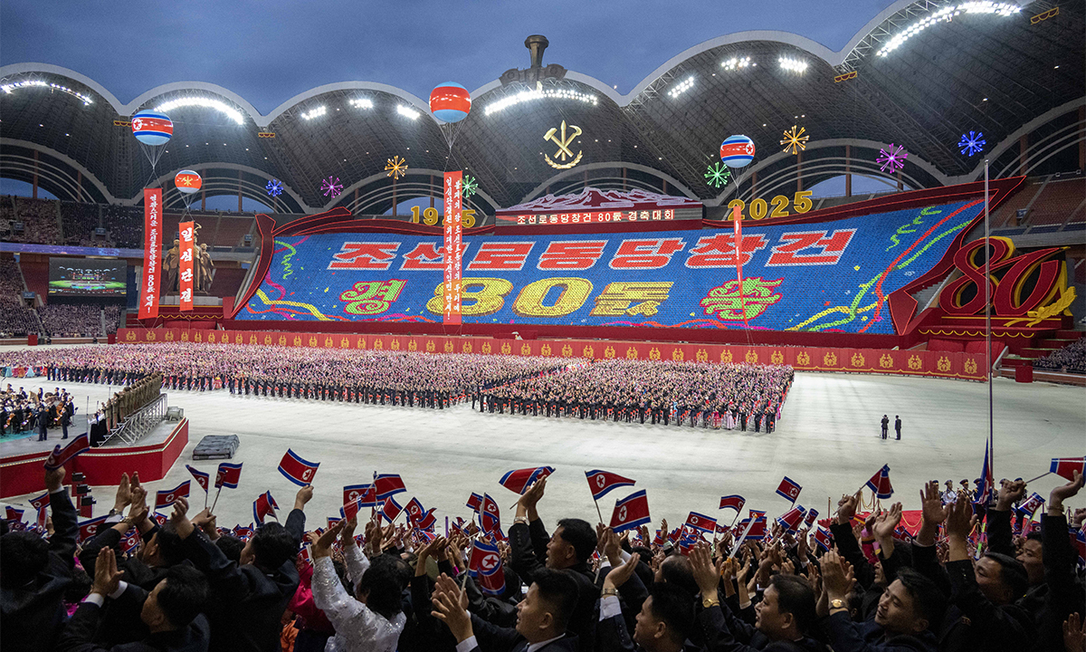 9일 평양 5월1일 경기장에서 노동당 창건 80주년 경축행사가 열리고 있다. 신화통신 캡처 |