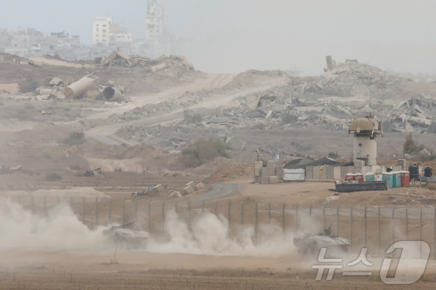 이스라엘 측에서 도널드 트럼프 미국 대통령이 이스라엘과 하마스가 가자 휴전의 첫 번째 단계에 합의했다고 발표한 8일 이스라엘군 차량이 가자지구와의 국경 인근에서 기동하고 있다. 2025년 10월 9일. ⓒ 로이터=뉴스1 ⓒ News1 강민경 기자 |