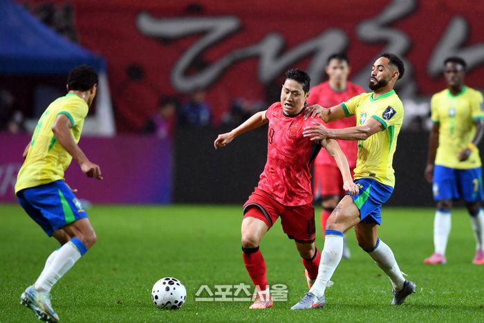 이강인은 10일 서울월드컵경기장에서 열린 브라질과의 A매치 평가전에서 0-5 대패한 뒤 “어려운 경기인 것 같다. 큰 점수 차이로 졌는데 많은 분이 찾아주셨다”라면서 “브라질은 항상 강한 팀이다. 월드컵에 가면 만날 수 있는 상대다. 이런 경기가 우리에게는 도움이 된다”라고 말했다.