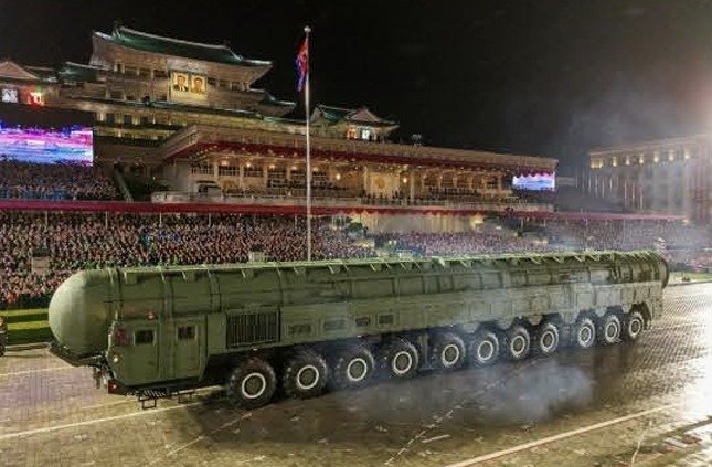 통신은 “한 치도 양보할 수 없는 생존권과 발전권, 평화 수호를 위하여 우리 당이 끊임없이 증대시켜 온 자위 국방력의 정수를 이루는 절대적 힘의 실체인 전략무기 체계들이 지심을 울리며 광장에 진입했다”고 언급했다.