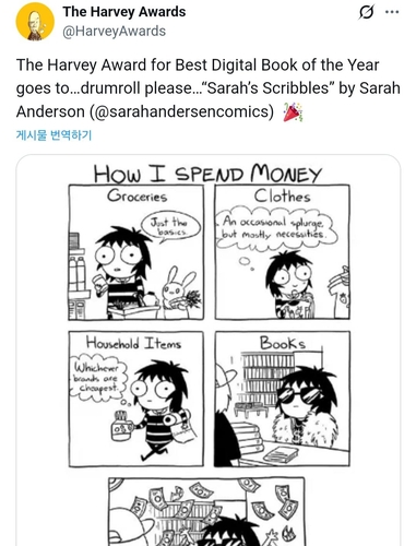 (서울=연합뉴스) 김경윤 기자 = 미국 대표 만화상인 하비상 시상식에서 올해의 디지털책으로 '세라의 낙서'(Sarah's Scribbles)가 선정됐다.