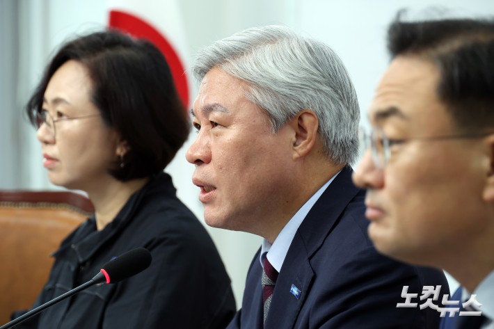 조국혁신당 서왕진 원내대표가 12일 서울 여의도 국회에서 열린 내란 청산·민생대책 등 국정감사 전략, 사법·정치개혁 등 기타 현안 관련 기자간담회에서 발언을 하고 있다.