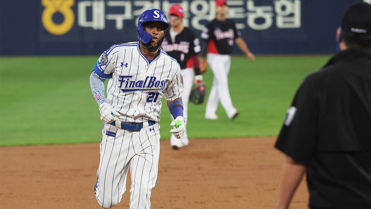 ▲ 30일 KIA와 삼성의 경기에서 삼성 디아즈가 외국인 타자 단일시즌 첫 50번째 홈런이자 3점 홈런을 친 후 그라운드를 돌고 있다.