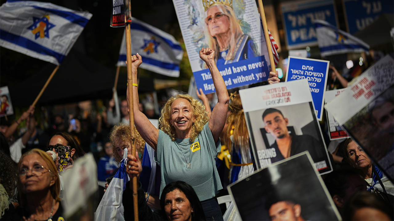 ▲ 13일 가자지구 인질 석방을 앞두고 사람들이 이스라엘 텔아비브의 광장에 모여 있다.