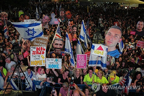 인질 석방 앞두고 이스라엘 텔아비브 인질 광장으로 모인 시민들 |