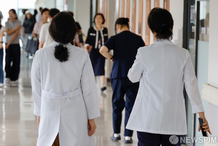 [서울=뉴스핌] 류기찬 인턴기자 = 사진은 기사와 관계 없음. 사진은 지난 8월11일 오후 서울의 한 대학병원에서 의료진들이 지나가고 있는 모습. 2025.08.10 ryuchan0925@newspim.com |