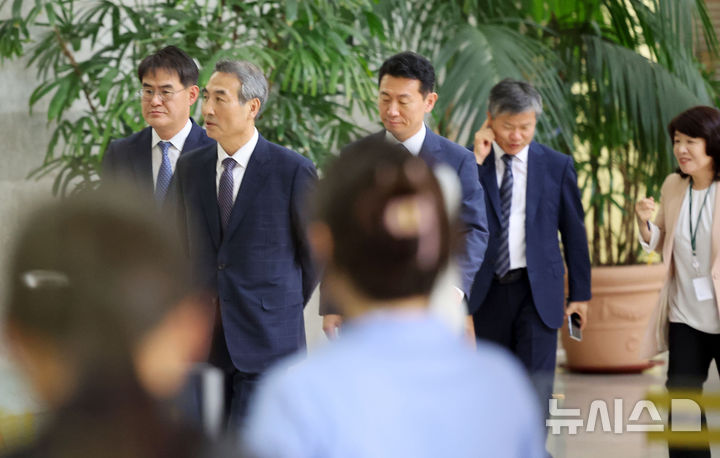 [서울=뉴시스] 윤석열 전 대통령 부인 김건희 여사 관련 의혹을 수사하는 민중기 특별검사를 비롯한 특검보들이 지난 6월 18일 서울 서초구 서울중앙지방검찰청에서 박승환 검사장 직무대리와 면담을 마친 뒤 이동하고 있다. 왼쪽부터 김형근 특검보, 민중기 특검, 박상진, 문홍주, 오정희 특검보. (사진=뉴시스DB). photo@newsis.com |