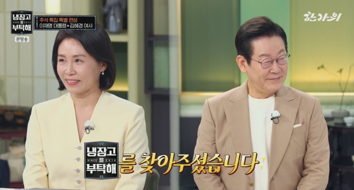 이 대통령 부부는 지난 6일 방영된 JTBC 예능 프로그램 냉장고를 부탁해에 특별 출연했다. 이 대통령은 “K-푸드를 세계 시청자에게 알리고 수출하는 데 도움이 되고자 나왔다”고 밝혔다. 그러면서 전 세계에 알리고 싶은 K-푸드와 K-식재료 시래기를 요리 대결 주제로 정했다. 요리사들은 퓨전 삼계탕과 보리새우 강정·콩가루 다식, 시래기를 활용한 무떡·송편과 이재명 피자를 선보였다.