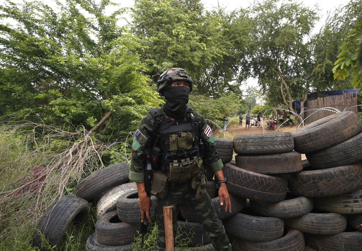 지난 10일(현지시간) 태국군이 사께오주 반농야께우 마을 국경을 침범하는 캄보디아 주민들을 감시하고 있다. EPA연합뉴스 |