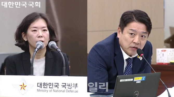 13일 국회 국방위원회 국정감사에 증인으로 출석한 황성혜(왼쪽) 구글코리아 대외협력정책 부사장과 부승찬 더불어민주당 의원(사진=국회의사중계시스템 갈무리) |