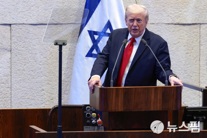 가자지구 평화 협정을 마무리하기 위한 중동 순방에 나선 트럼프 대통령은 이날 이스라엘 의회인 크네세트에서의 연설에서 가자지구에서 억류됐던 인질이 귀환하고, 이스라엘 교도소에 있던 팔레스타인 수감자들이 석방된 것을 두고 "수년간 이어진 참혹한 전쟁을 끝내는 합의"라며 이같이 말했다.