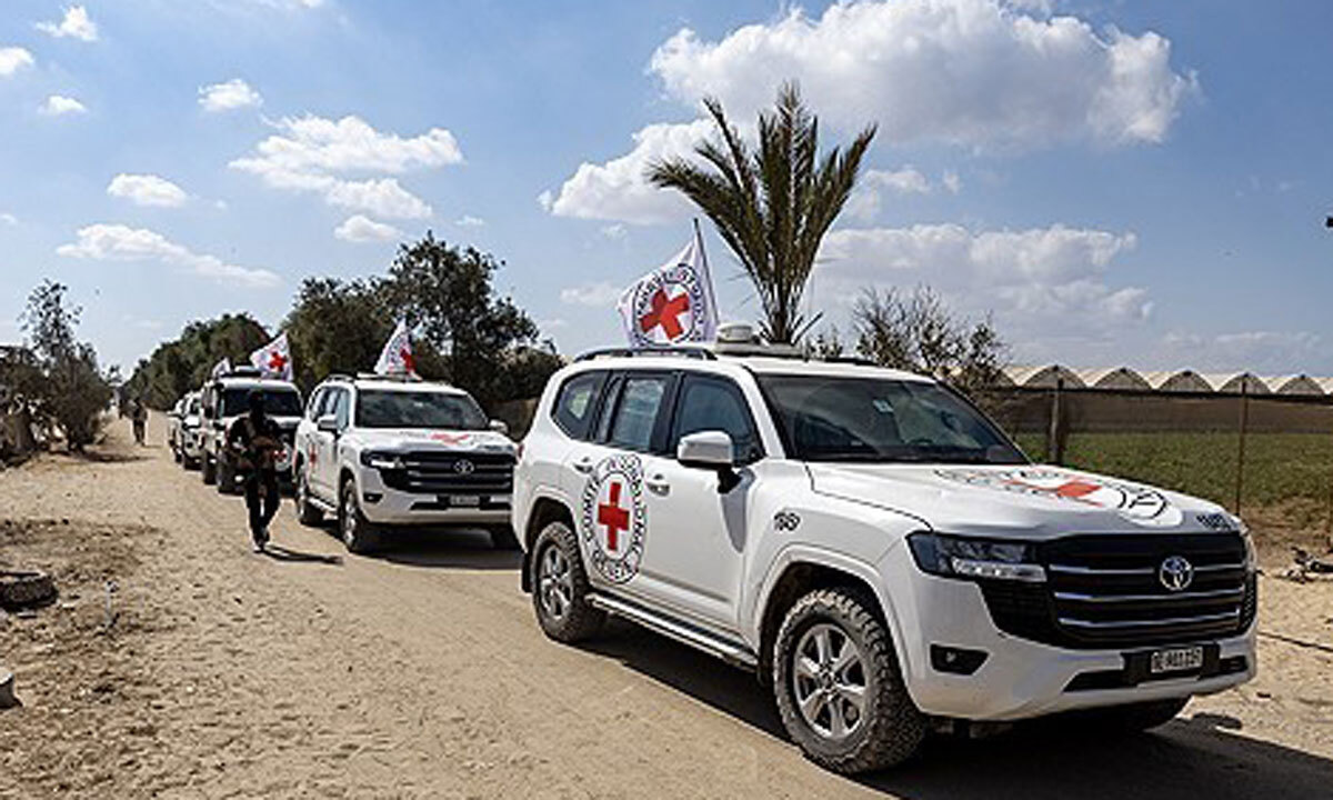 이스라엘 생존 인질 수송한 국제적십자위원회(ICRC) 차량. EPA연합 |