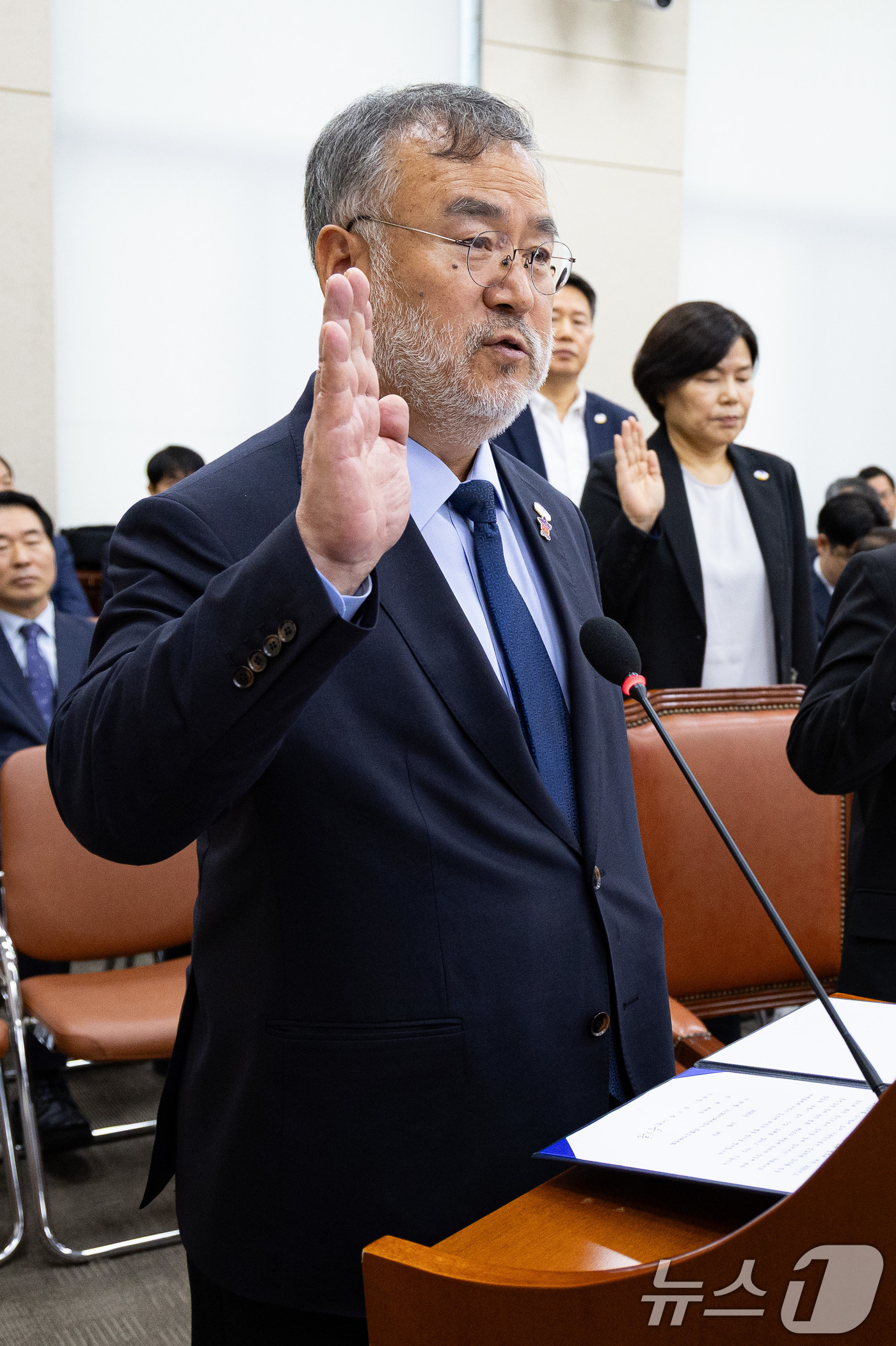 (서울=뉴스1) 유승관 기자 = 송기춘 10·29이태원참사 특별조사위원회 위원장이 14일 서울 여의도 국회에서 열린 행정안전위원회의 행정안전부 등에 대한 국정감사에서 증인선서를 하고 있다. 2025.10.14/뉴스1