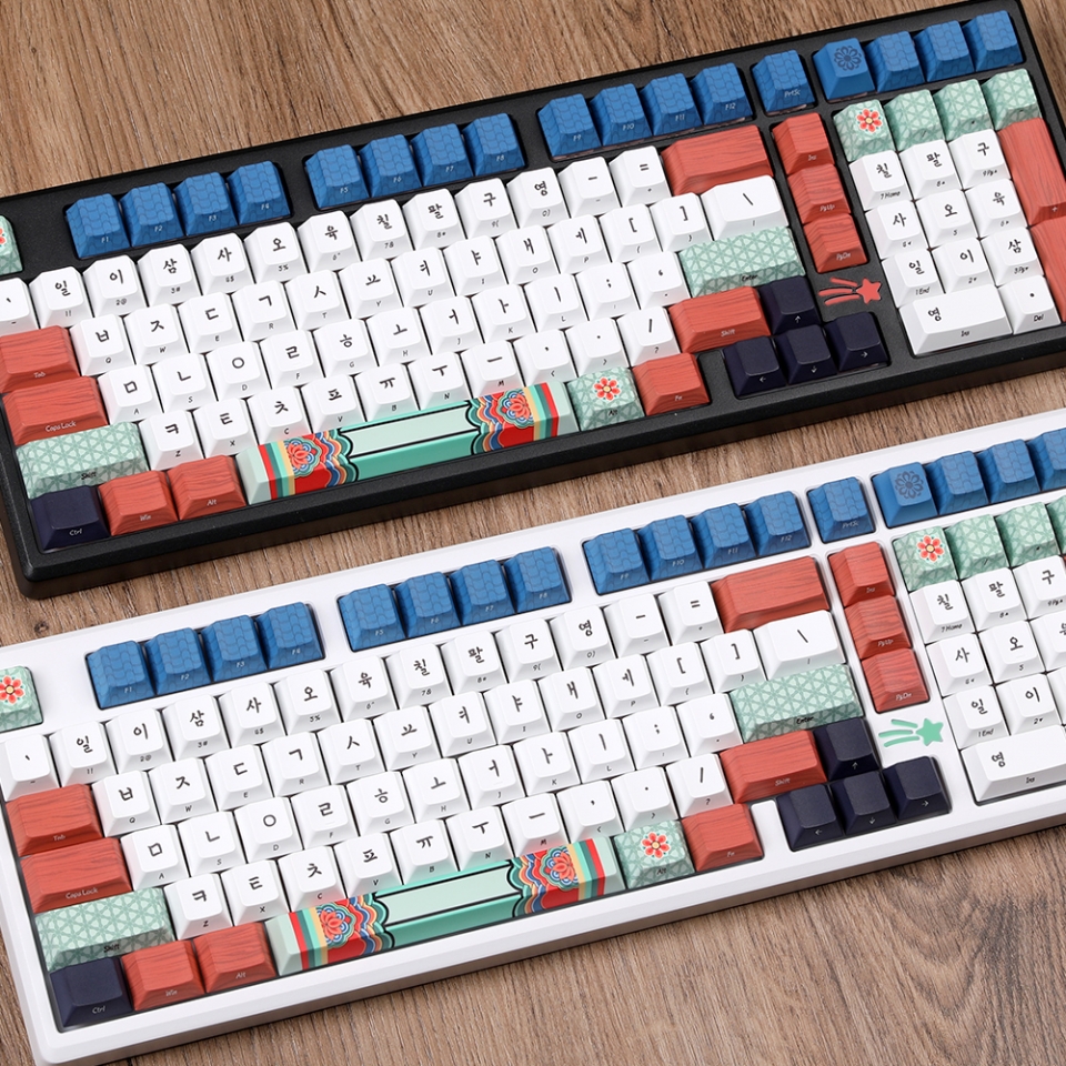'집현전 키캡'은 몬스타 가츠 한국의 결 시리즈로, 조선시대 학문과 지식의 중심이었던 집현전의 문화적 유산을 현대적인 키보드 디자인으로 풀어낸 것이 특징이다. 경복궁의 은은한 고유 색감을 재현하고, 연꽃문 단청 문양, 궁궐기와 및 꽃살문 패턴, 서까래 단청 등의 전통 문양을 키캡 디자인에 녹여냈다. 키캡 각인은 붓글씨의 유려한 곡선과 강한 필체를 재해석한 폰트로 새겨져 있어, 한글의 미학을 고스란히 담아낸다.