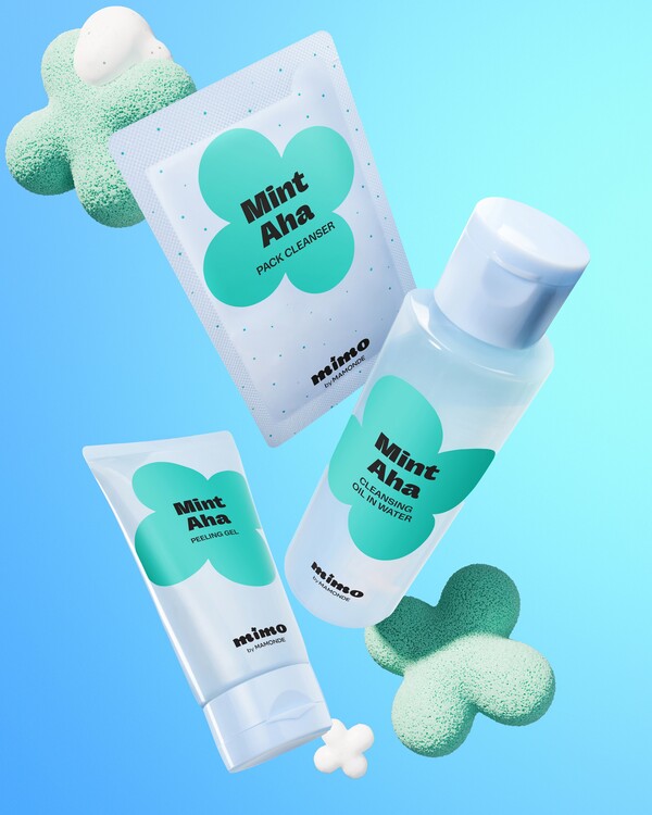 클렌징 워터와 오일로 구성된 2층상 하이브리드 클렌저 '민트-AHA 클렌징 오일 인 워터', 촉촉하게 수분 필링이 가능한 '민트-AHA 필링 젤', 숯 스크럽으로 피부 각질을 관리하는 '민트-AHA 팩 클렌저' 3종으로 선보인다.