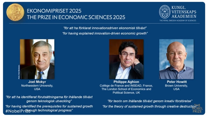 경제사학자인 모키르 교수는 기술 진보를 통해 지속가능한 성장의 전제 조건을 파악한 공로로 올해 노벨경제학상 수상자로 선정됐다. 하윗 교수와 아기옹 교수는 혁신과 경쟁이 경제 발전을 촉진하는 과정을 밝힌 점을 높이 평가받았다.