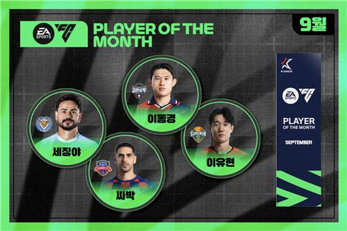 한국프로축구연맹은 14일 "2025시즌 9월 K리그 'EA 스포츠 이달의 선수상' 후보에 세징야, 싸박, 이동경, 이유현이 올랐다"며 "수상자를 선정하는 팬 투표를 오는 16∼19일 실시한다"고 발표했다.