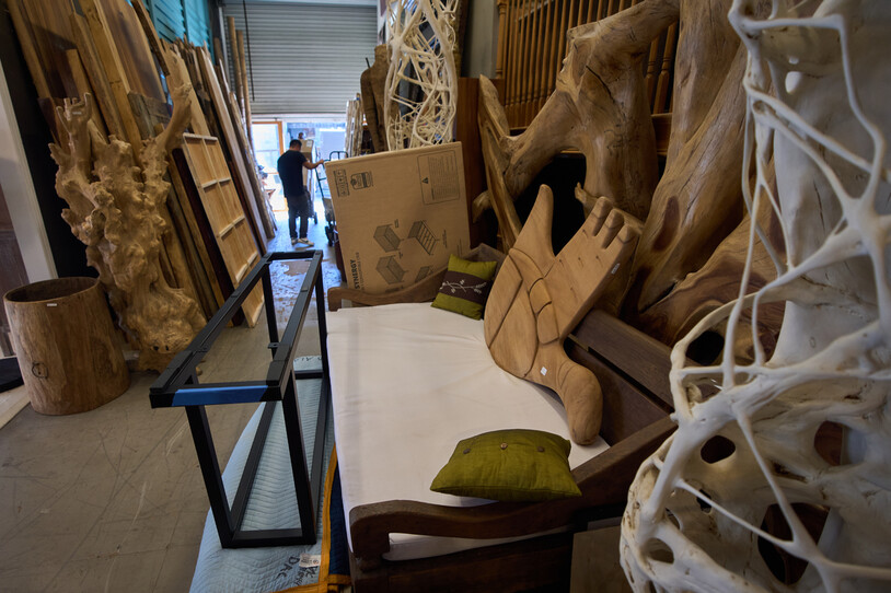2025년 9월29일 미국 캘리포니아주 솔라나비치의 수입 가구점에서 한 남성이 일하고 있다. AP 연합뉴스 |