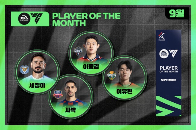 [인터풋볼=주대은 기자] 2025시즌 9월 'EA SPORTS 이달의선수상(EA SPORTS Player Of The Month)'의 주인공을 선정하는 팬 투표가 16일(목)부터 19일(일)까지 4일간 실시된다.