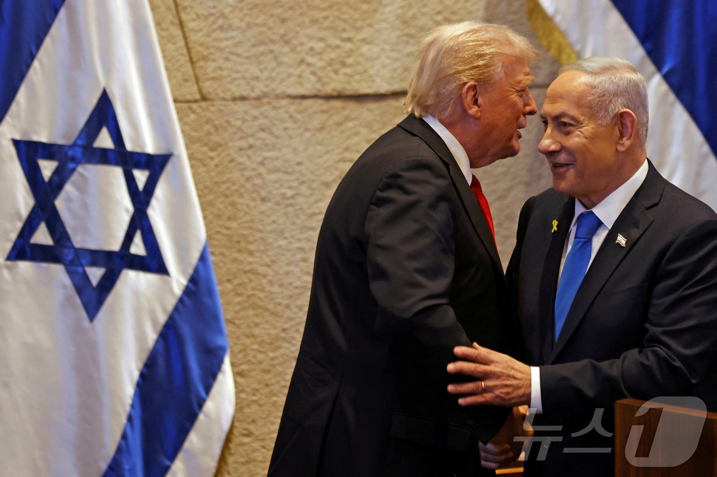 이스라엘 의회에 함께 나온 트럼프 미국 대통령(왼쪽)과 네타냐후 이스라엘 총리. 2025.10.13 ⓒ 로이터=뉴스1 ⓒ News1 이지예 객원기자 |