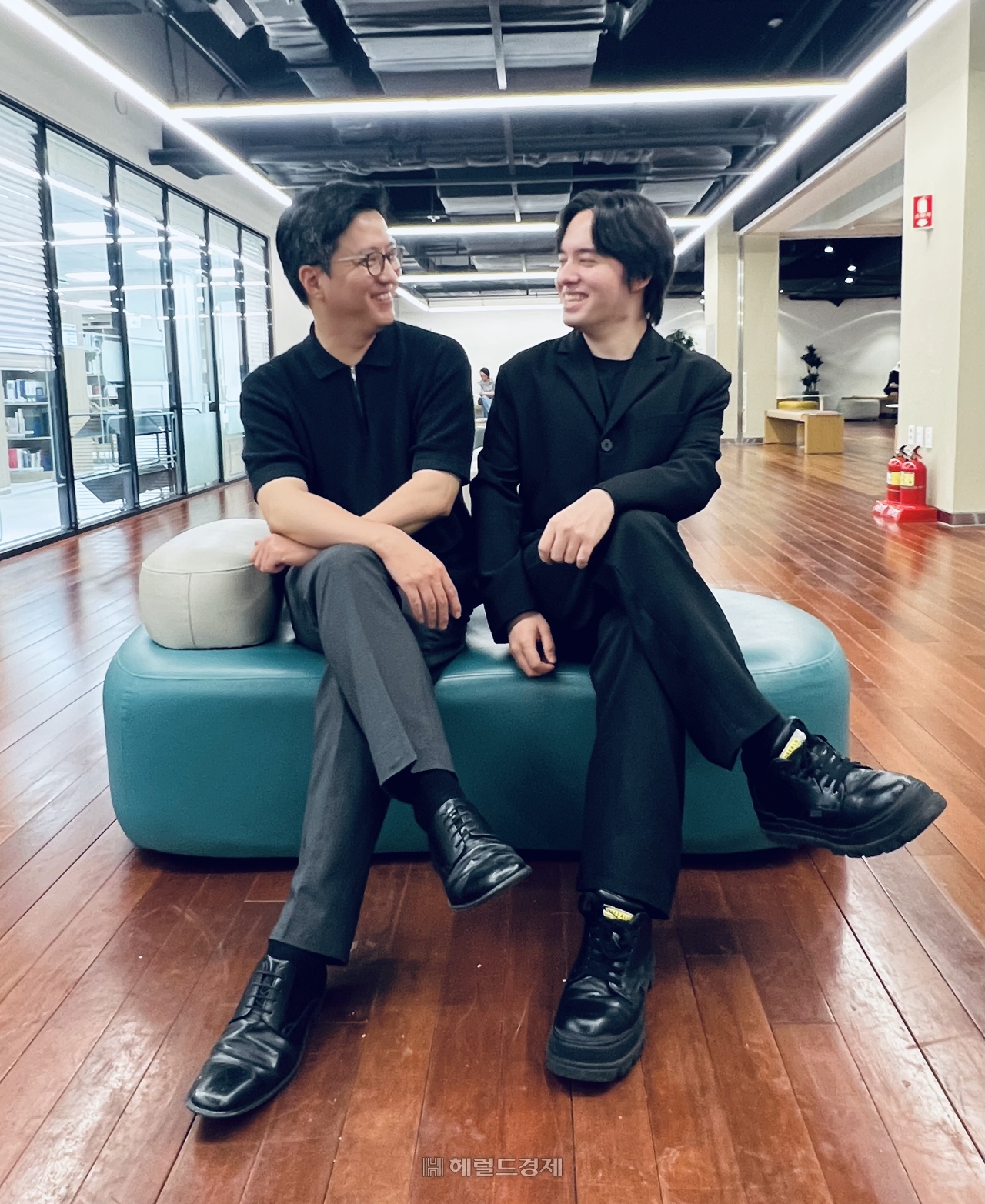 박상후 KBS국악관현악단 상임 지휘자와 일본계 독일인 바이올리니스트 타카시 로렌스 바슈카우/고승희 기자 |