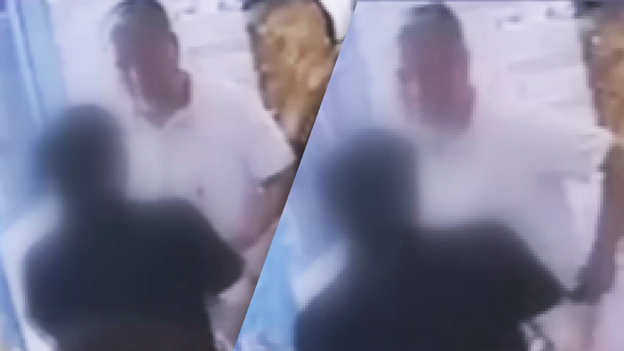 대화하던 중년 남성이 일어서더니 갑자기 자신의 바지를 내립니다.