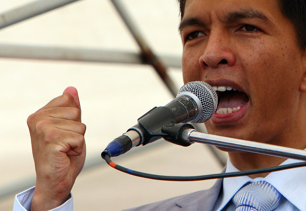 마다가스카르 야당 지도자였던 안드리 라조엘리나 대통령이 2009년 3월16일(현지시간) 안타나나리보에서 지지자들에게 연설하고 있다. AFP연합뉴스 |